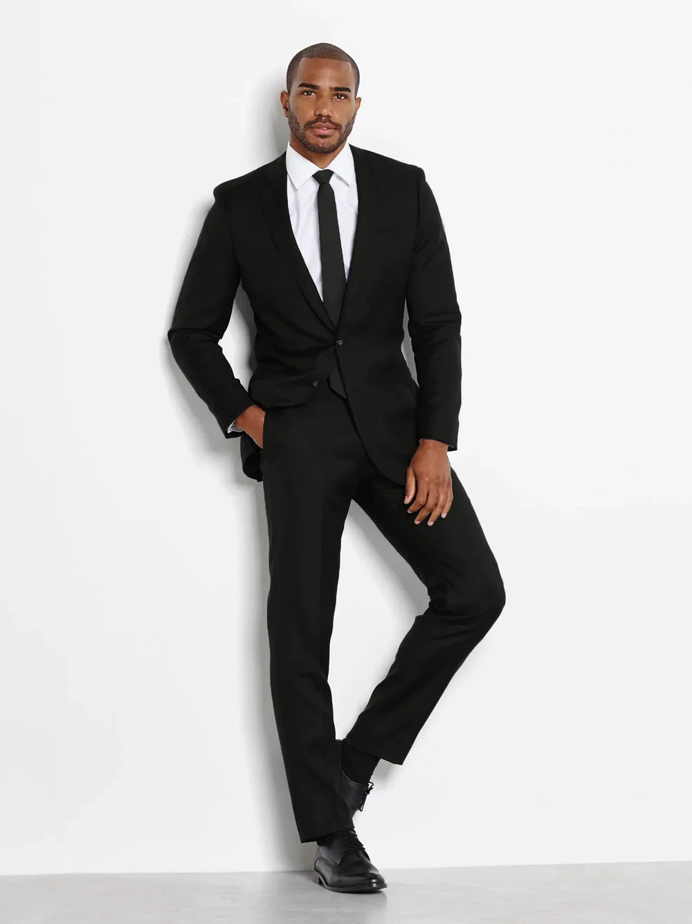 When your event is too formal for a colorful suit but a full-on tux is just too much, reach for this black beauty - the perfect look for dress code purgatory. Includes jacket and pants. Pants are available in classic and slim fits.